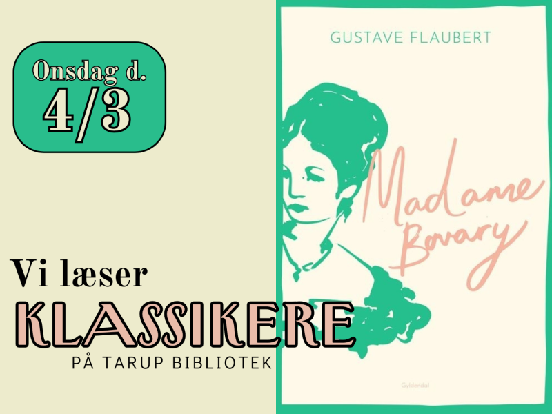 Med en bibliotekar for bordenden tager vi denne gang livtag med ”Madame Bovary” af Gustave Flaubert. Vi hjælper alle tilmeldte deltagere med at skaffe bogen (en måned før vi mødes).